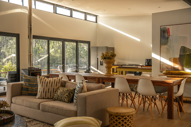The Lake House is perfect for light meals and morning gatherings, while the main house remains the heart of shared cooking and group dining.